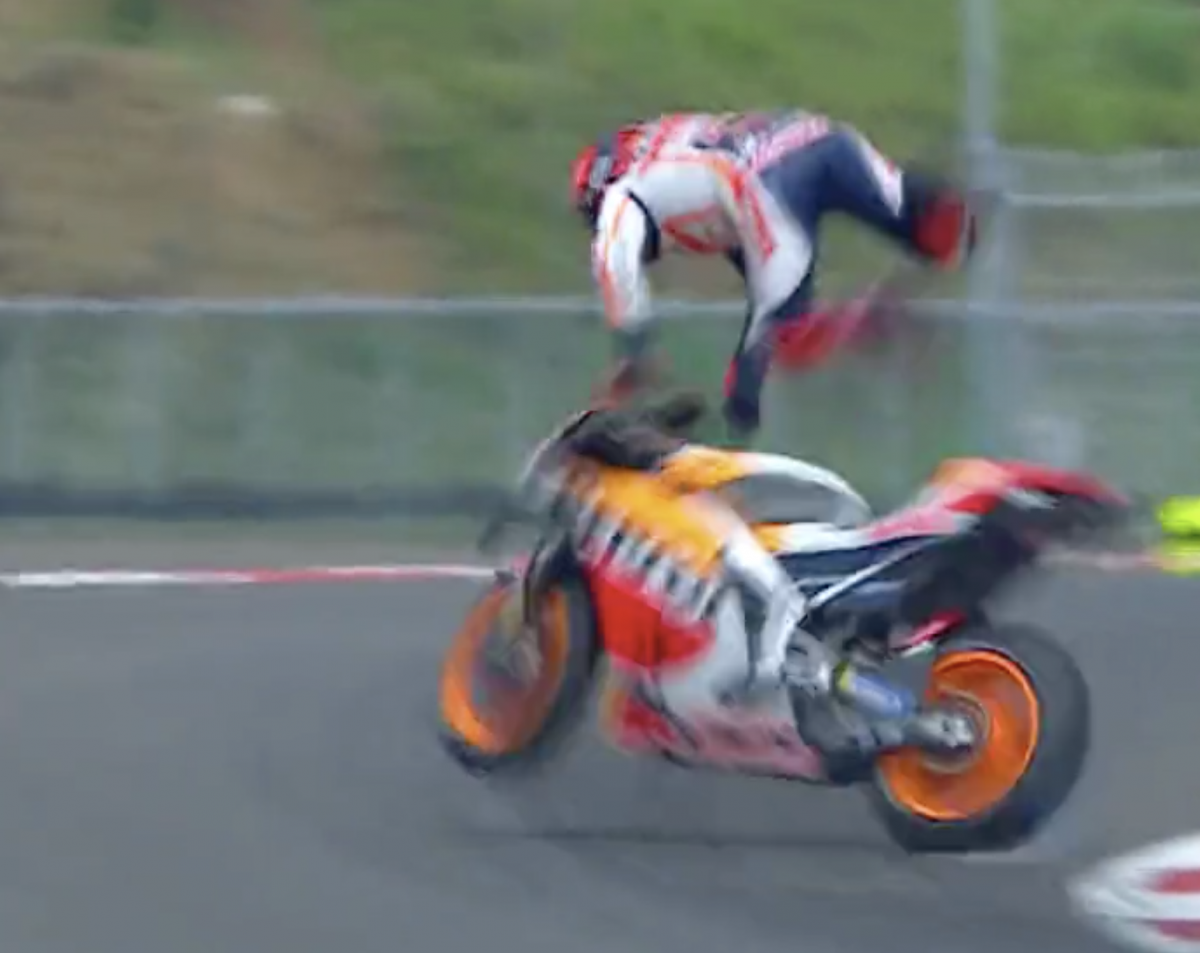 Marc Márquez fue declarado no apto para tomar parte en el Gran Premio de Indonesia de MotoGP disputado en el circuito de Mandalika, después de sufrir una dura caída en la curva 7 durante la sesión de Warm Up previa a la carrera.