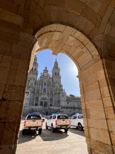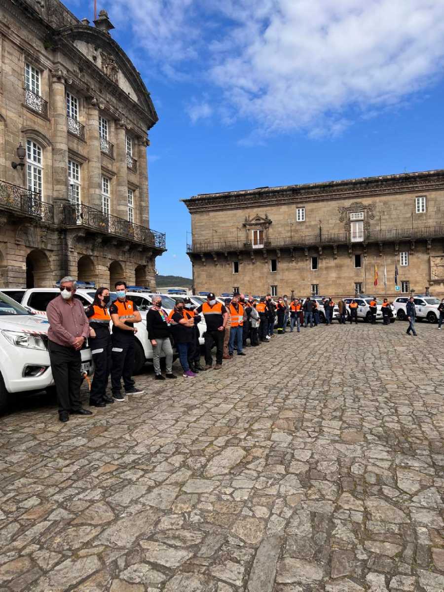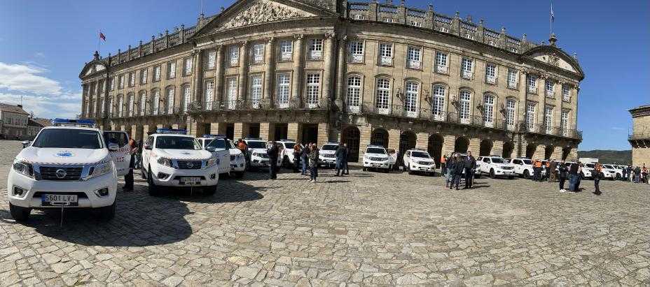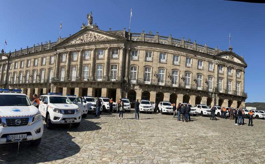El vicepresidente primero de la Xunta, Alfonso Rueda, acompañado del Director General de Emergencias e Interior, Santiago Villanueva, hizo entrega en la Plaza del Obradoiro de 19 vehículos tipo pick up a agrupaciones de voluntarios de Protección Civil de las cuatro provincias gallegas.