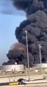 Large fire at Aramco facility in Jeddah, Saudi Arabia after Houthi missile attack. It's worth noting that the Formula 1 is in Jeddah this weekend. pic.twitter.com/Ozk35ekuu0