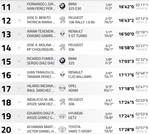 A primera hora de la tarde se disputará la especial ‘Tegueste – Tejina’ (7,40 km a las 15:09 h y 17:25 h), o lo que es lo mismo, por delante quedan 14,80 km de recorrido que terminarán por definir la clasificación final de la prueba que organiza Sport Eventos Tenerife.