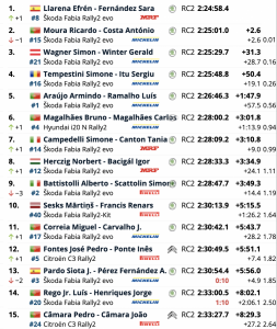 Terceros fueron los austriacos Simon Wagner y Gerald Winter (Škoda Fabia Rally2 evo), que se quedaron a 31,3, siendo cuartos los rumanos Simone Tempestini y Sergiu Itu (Škoda Fabia Rally2 evo), a 50.4.