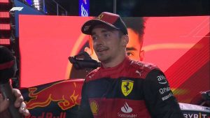 La carrera se ha reanudado con nueve vueltas por delante y Verstappen se ha echado literalmente encima de Leclerc. Los dos pilotos, en zona de DRS, han elevado al máximo el nivel del espectáculo, con adelantamientos al límite, rozando el muro, jugando al ‘gato y el ratón’. El acoso del campeón se ha intensificado al extremo, pero Leclerc ha dado una auténtica exhibición.