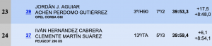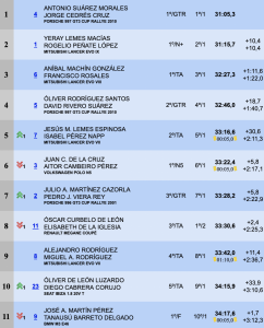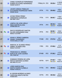 Suso Lemes e Isabel Pérez (Mitsubihsi Lancer Evo), Juan Carlos de la Cruz-Aitor Cambeiro (VW Polo N5) y Julio Martínez-Pedro Viera con el tercero de los Porsche, se clasificaron por este orden a continuación. Suso se quejaba de unos neumáticos que no cogían la temperatura adecuada, Juan Carlos sufrió más de un problema técnico que le retrasaban, además de alcanzar en el TC1 a Julio Martínez, que se salía tras bloquearse el acelerador de su montura.