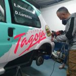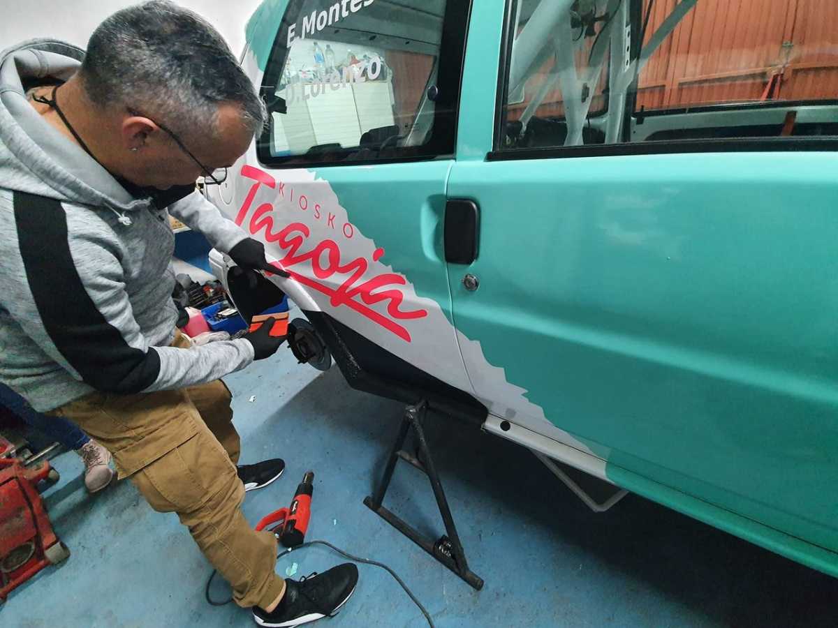 Lo que se a hecho con este rotulado es cosa de locos… En menos de una semana preparo él y el amigo Víctor todos los vinilos y se vino un fin de semana junto a su familia a La Palma a pasar fatigas y sueño junto a nosotros en el garaje…