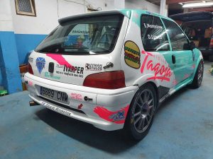 El piloto palmero Eduardo Montesinos, del equipo EMRallye, ha presentado los nuevos colores de su Peugeot 106 S16.