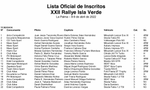 El XXII Rallye Isla Verde se presenta con casi 30 equipos inscritos, entre ellos, las principales escuadras que deben pujar por el título de aquí a final de temporada. La cita de la isla de La Palma cuenta con una buena representación de formaciones de casi todas las islas, subrayando así su aspecto regional.