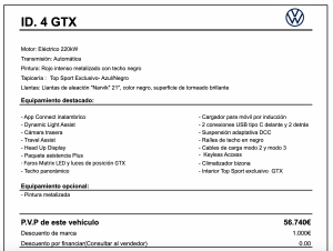 - El ID.4 GTX es el primer modelo de la marca de alto rendimiento GTX y el primer vehículo eléctrico basado en la plataforma MEB equipado con tracción total