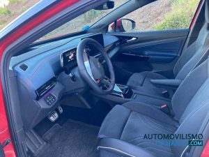 El diseño interior transmite el carácter exclusivo y sostenible del modelo. Tanto la sección superior del salpicadero como las inserciones decorativas de cuero artificial vienen con un tono azul oscuro, sinónimo de movilidad eléctrica, y se complementan con costuras de color rojo que establecen una conexión con los modelos GTI y resaltan el carácter deportivo del modelo. El volante multifunción de cuero incorpora un clip identificativo GTX también en rojo y los asientos muestran sus siglas bordadas.