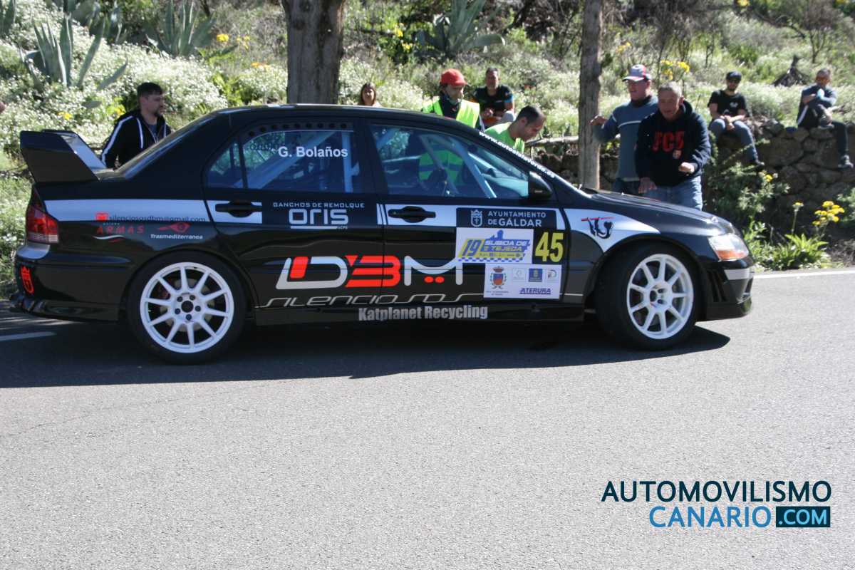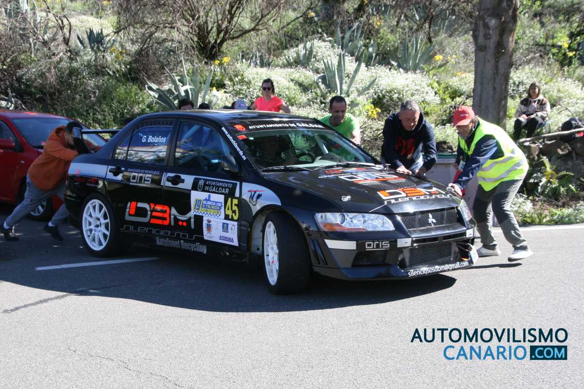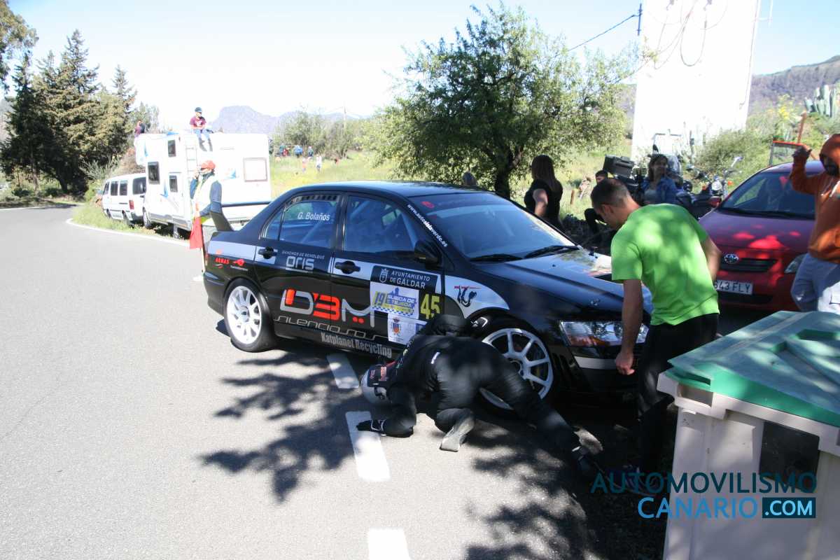 La ausencia del gran favorito, Miguel Cabral (Mitsubishi Lancer Evo X) ponía las miradas en el piloto grancanario Gustavo Bolaños (Mitsubishi Lancer Evo VII) como gran favorito a optar al triunfo en Tejeda, pero lo que nadie podía imaginar, ni el propio Gustavo, es que a los pocos metros de la salida de la manga de entrenamiento su montura se pararía.