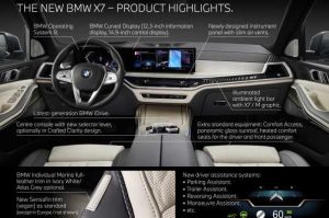 - Nueva edición del primer BMW X7. La actualización dirigida al Sports Activity Vehicle (SAV) del segmento de lujo aporta una gran cantidad de innovaciones que abarcan las áreas de diseño, tren motriz, conducción y estacionamiento automatizados, manejo intuitivo y conectividad inteligente. Un carácter único reforzado por una mezcla muy distintiva de exclusividad, amplitud, dinámica de conducción y versatilidad.