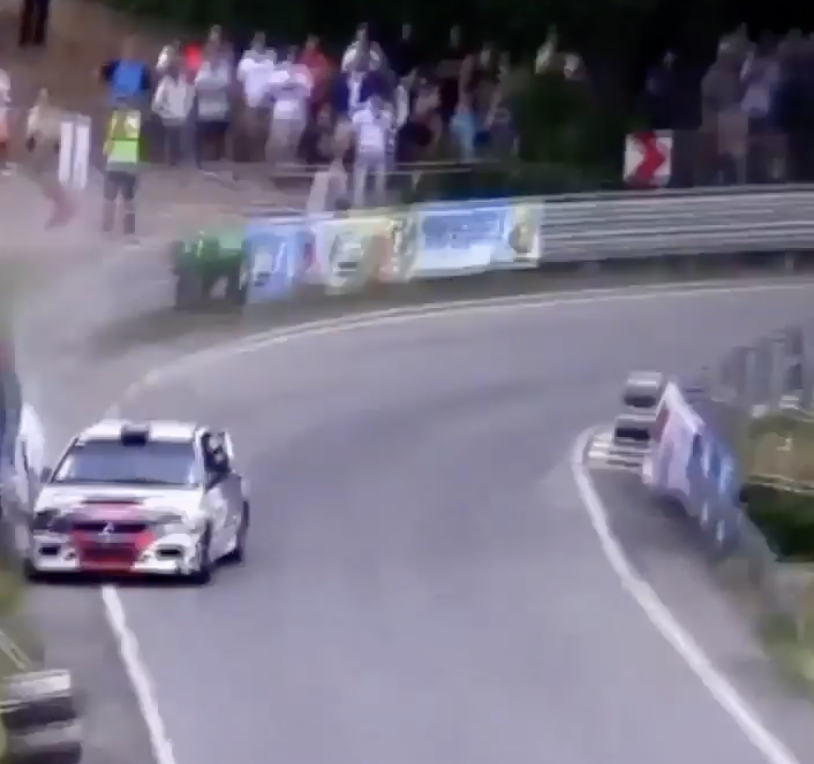 Publicamos un vídeo donde un Mitsubishi Lancer se sale de la carretera y va a impactar contra un coche que parecía que estaba bien aparcado, pero termina siendo golpeado.