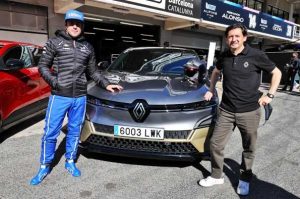 Fernando Alonso se ha puesto a bordo del nuevo Megane E-TECH eléctrico para dar una vuelta al Circuito de Barcelona-Catalunya con los primeros clientes españoles del vehículo. Domingo Baena, de Madrid y Xavier Tarrés Vilanova, de Lérida, han sido los dos primeros clientes españoles que consiguieron la pole position a la hora de confirmar el pedido de su nuevo Renault Megane E-TECH eléctrico, lo que los ha llevado a disfrutar de un día en Montmelló con el piloto.