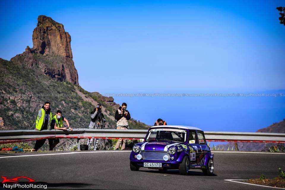 Pedro Ignacio Díaz y Roberto Mendoza no se perdieron la Subida de Tejeda con su Mini Cooper, que hizo las delicias de aficionados y deportistas.