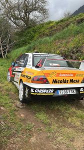 En la décimo tercera plaza de la general del Rally Norte rodaban los tinerfeños Abel Mesa y Arunzú Quintero, hasta que un problema mecánico en su Mitsubishi Lancer Evo IX a poco de arrancar el segundo bucle les impidió seguir en carrera.