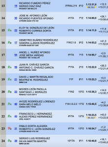 Caso contrario fue el del Sergio Fuentes y Alain Peña (Renault Clio Rally4), que de empezar como los terceros más rápidos acabaron séptimos, merced, también, a una penalización de medio minuto les retrasó, aunque su mejora en puestos podría haber sido acabar en el quinto.