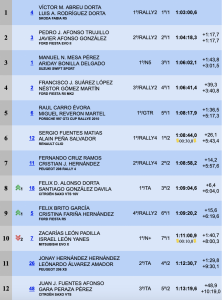 Caso contrario fue el del Sergio Fuentes y Alain Peña (Renault Clio Rally4), que de empezar como los terceros más rápidos acabaron séptimos, merced, también, a una penalización de medio minuto les retrasó, aunque su mejora en puestos podría haber sido acabar en el quinto.
