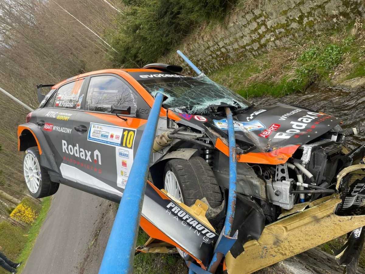 Marcin Słobodzian y Michał Poradzisz (Hyundai i20 Rally2) ya saben lo que significa ‘volver a nacer’. En el segundo tramo del Rally Świdnica-Kraus sufrían una salida de carretera y golpeaban contra unos hierros que entraron dentro del coche. La suerte estuvo de su lado y todo quedó en un susto, en un gran susto.