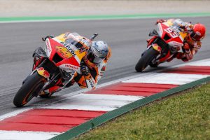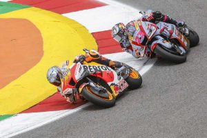 En una carrera con el asfalto seco – por primera vez en todo el fin de semana – y bajo unas nubes amenazantes, Marc Márquez y Pol Espargaró han terminado un complicado fin de semana en el top 10.