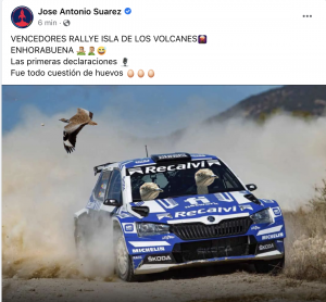Muy comentado ha sido el especial sentido del humor con el que el piloto asturiano José Antonio ‘Cohete’ Suárez se ha tomado la suspensión del Isla de Los Volcanes. En sus redes ha publicado fotos y vídeos que han generado múltiples comentarios.