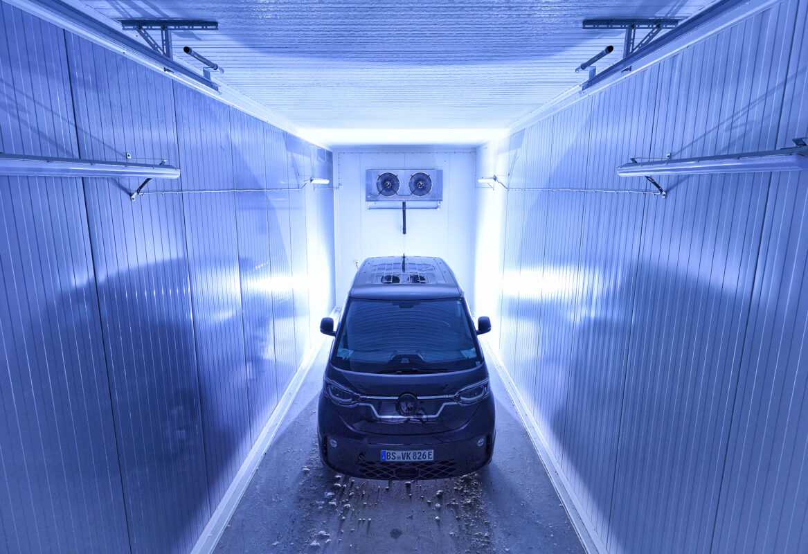 Las pruebas se realizan con todo tipo de detalles: en la cámara de frío, por ejemplo, se comprueba la rapidez con la que, tras el arranque del vehículo, el retrovisor exterior se desempaña gracias a la calefacción del espejo. Para superar la prueba, el espejo del retrovisor, preacondicionado a 20 grados bajo cero, debe proporcionar una nítida visibilidad de la parte trasera tan solo tres minutos después.