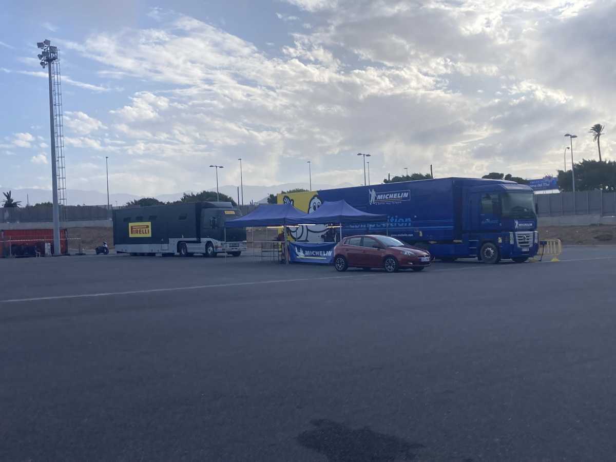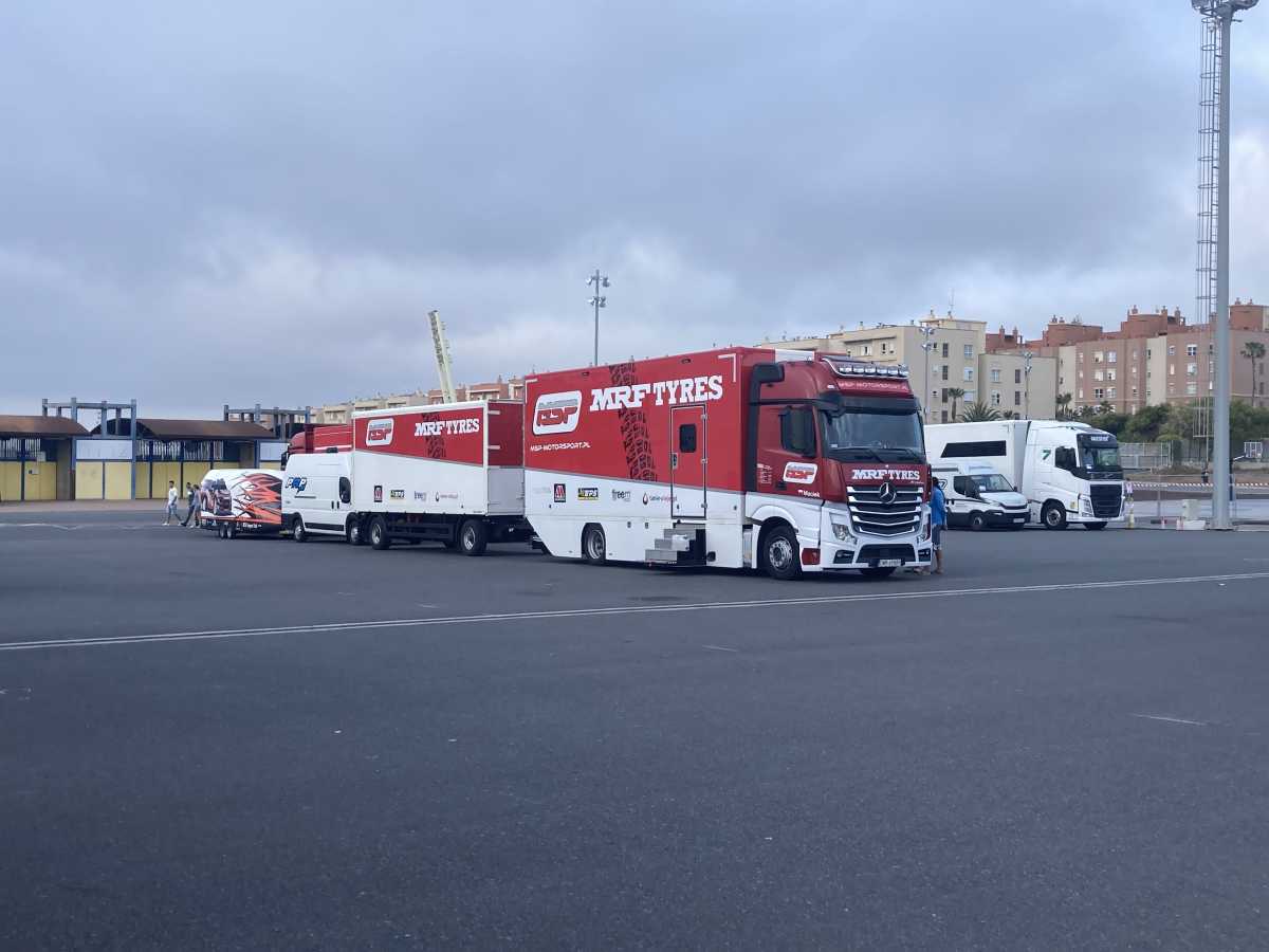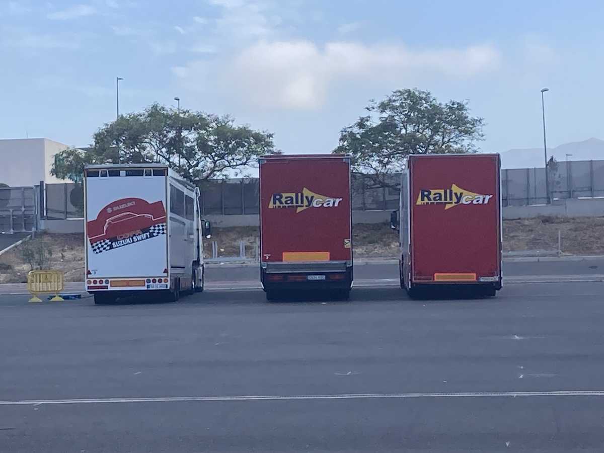 Publicamos varias fotos y un vídeo de la llegada de los equipos al parque de trabajo del Rally Islas Canarias, en los exteriores del estadio de Gran Canaria.