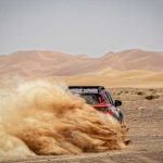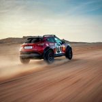 El interior se ha modificado con la instalación de una jaula tubular para reforzar la carrocería y ofrecer protección en caso de un accidente a gran velocidad en el complicado entorno desértico. Los asientos traseros se han eliminado para proporcionar espacio para las ruedas de repuesto y se han incorporado arneses de cuatro puntos para asegurar a piloto y copiloto de manera segura en sus asientos.
