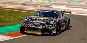 Porsche comienza a probar la tecnología del Mission R con el 718 Cayman GT4 ePerformance ,aquel concept car presentado en el IAA Mobility 2021 en Múnich, que representó la visión de futuro de un coche totalmente eléctrico para carreras de clientes.