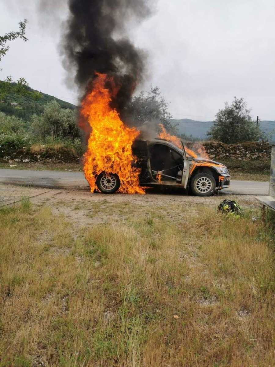 Mala suerte para los lusos Manuel Castro y Ricardo Cunha en el Rally de Portugal, cita del WRC, al ver que en la octava cronometrada su Škoda Fabia R5 comenzó a quemarse, son nada que pudiera hacer por evitarlo.