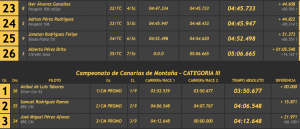 Nicomedes marcó un 4:01.125 inicial y empeoró en la manga final con un 4:03.135, pero su primer tiempo le valió para superar en 5.277 a Claudio García (Mitsubishi Lancer Evo VIII), segundo, mientras que Antonio Jesús Sánchez (Mitsubishi Lancer Evo IX) era tercero a 8.285 de la cabeza y a 3.008 de la segunda posición.