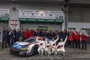 Audi logra la victoria en la 50ª edición de las 24 Horas de Nürburgring. En una espectacular carrera con numerosos adelantamientos, cambios de líder y un emocionante final con lluvia, los pilotos Robin Frijns, Kelvin van der Linde, Dries Vanthoor y Frédéric Vervisch se alzaron con el triunfo al volante del Audi R8 del Audi Sport Team Phoenix. Esta es la sexta victoria absoluta en una década en la mítica carrera de resistencia para la marca de los cuatro aros.