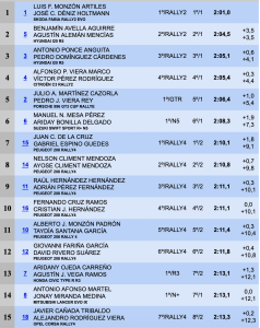 Los primeros ganadores de la Rally Cup, Alberto Monzón y Taydía Santana (Peugeot 208 Rally4) se sitúan undécimos y quintos de la monomarca, seguidos de Giovanni Fariña y David Rivero (Peugeot 208 Rally4), décimo segundos.
