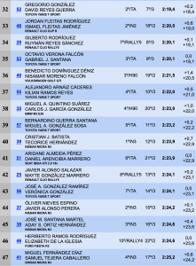 Novenos de la general y terceros de la Rally Cup son Raúl Hernández y Adrián Pérez con el tercero de los Peugeot 208 Rally4, misma unidad que el tinerfeño Fernando Cruz y el gomero Cristian J. Hernández, qie son décimos con el mismo crono que los novenos.