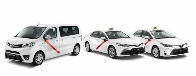 Toyota España pone a disposición del sector del taxi la más amplia y completa gama de modelos para que sus profesionales lleven a cabo su trabajo diario de la forma más eficiente y cómoda posible. Las opciones abarcan tres berlinas, dos con tecnología híbrida eléctrica —Corolla Sedan Electric Hybrid y Camry Electric Hybrid— y una de pila de combustible de hidrógeno —Toyota Mirai—, además de dos variantes, una de motor diésel y otra de motorización eléctrica, de Proace TPMR (Transporte de Personas con Movilidad Reducida).