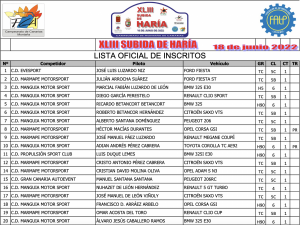 La 43º Subida de Haría adelanta la lista oficial de inscritos que está compuesta por un total de 40 vehículos, de los cuales seis participan en la modalidad de Fórmula Rallye. Esta es la cita del Regional de Montaña de la isla de Lanzarote, que es igualmente puntuable para el Campeonato de Montaña de Las Palmas y el Campeonato Insular de Automovilismo. La organización está a cargo del CD. Evesport y la colaboración del Ayuntamiento de Haría y el Cabildo de Lanzarote, más el patrocinio de los Centros de Arte, Cultura y Turismo, Orvecame y CICAR. La prueba se disputará este próximo sábado 18 de junio, a partir de las 15 horas, con verificaciones previas de los vehículos a lo largo de la mañana en el mismo pueblo de Haría.