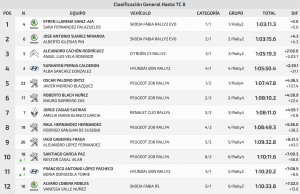 Quintos son Oscar Palomo y Javier Moreno (Peugeot 208 Rally4), primeros entre los Rally4 y superando en 22.4 a sus más inmediatos perseguidores, Roberto Blach y Mauro Barreiro, con otro 208 Rally4.