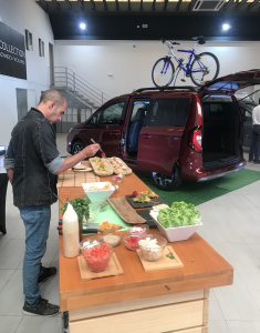 El trayecto estuvo pilotado por Miguel Crispín, Gerente de Brisa Motor; Jesé Ramos, responsable de producto y el prestigioso cocinero Ernesto Cárdenas, Chef de La Fábrica y Hotel Rural Mondalón; quien nos demostró que con la Townstar puedes hacer de tu experiencia una aventura gastronómica llena de glamour, de color y creatividad.