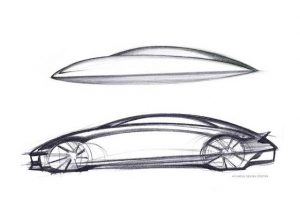 - El boceto adelanta la silueta aerodinámica característica de la nueva era de los vehículos eléctricos de Hyundai