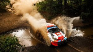 «Hoy ha sido un trabajo bastante duro simplemente mantenerse en la carretera», dijo Rovanperä. «Aquí no hay agarre en el barro y a veces hay tanta agua que es difícil pasar.