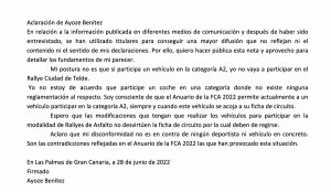 Publicamos la aclaración que nos remite el piloto grancanario Ayoze Benítez en relación a la información publicada en diferentes medios de comunicación y después de haber sido entrevistado.