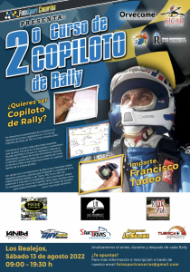 El Curso de Copiloto está diseñado y orientado para todo el que quiera, y esté interesado, ya sea aficionado o copiloto con experiencia. El curso será impartido por Francisco Tadeo quien será el encargado de enseñar a preparar y a actuar en una carrera tanto del Campeonato de Canarias de Rallys o del Provincial al máximo detalle.