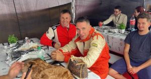 A pesar de no poder acabar, Heriberto Santana y Luis Azael Falcón (Volkswagen Golf GTI) disfrutaban con su familia su gran séptimo puesto al final del sexto tramo. Una pena no tener el premio final.