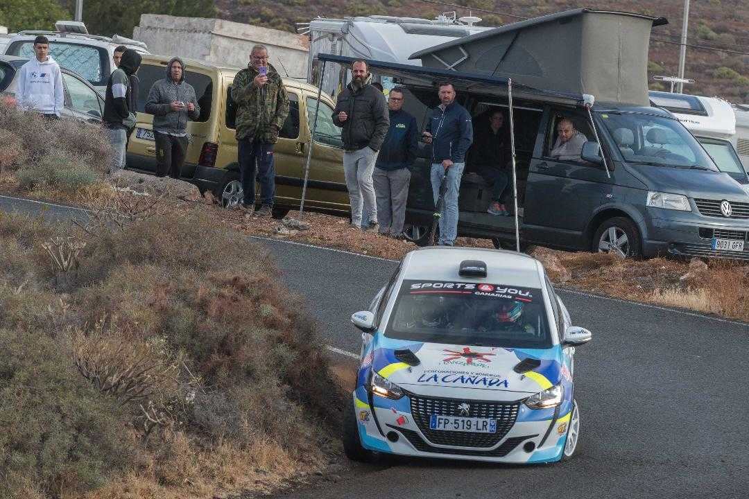 El joven Raúl Hernández, acompañado por Aitor Cambeiro, se anotó, para sorpresa de todos, el primer scratch absoluto de la prueba grancanaria. Fue solo el principio de un comienzo arrollador, ya que al mejor tiempo en ‘Cruz de Jerez-Marfú’ le siguió el de ‘Ingenio-La Pasadilla’ y el de ‘Cazadores-Los Picos’; tres mejores tiempos consecutivos que dejaban en cabeza, con 35,8 segundos de ventaja, a los del Peugeot 208 Rally4.