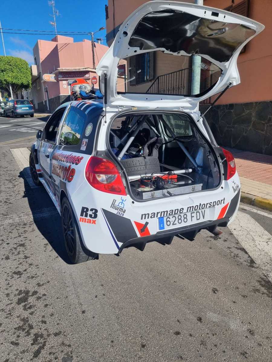 El piloto lanzaroteño Marcial Álvarez, copilotado por la grancanaria Taydía Santana, compitieron en un complicado Rally Ciudad de Telde, hasta que la mecánica de su Renault Clio R3 T dijo basta.
