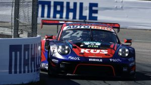 El piloto de Linz, de 23 años, condujo con confianza durante las fases de coche de seguridad y banderas amarillas, para cruzar la línea de meta con una ventaja de 3,675 segundos. Detrás de él, Dennis Olsen, con el 911 nº 94 de SSR Performance, aprovechó un error de un competidor poco antes de la bandera a cuadros y consiguió el segundo puesto. El belga Laurens Vanthoor terminó cuarto con el coche gemelo nº 92.