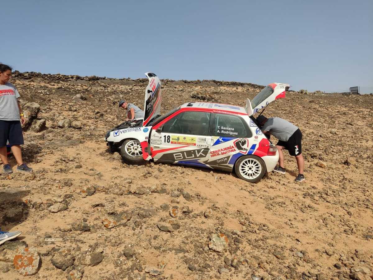 Mucho malestar ha creado entre parte de la afición la situación vivida en el RallySprint Tomás Viera, en la isla de Lanzarote, donde el equipo palmero compuesto por Toni Santana y Aythami Rodríguez sufría una salida de carretera con su Citroën Saxo VTS, quedando dañada su montura, viendo con impotencia que no les mandaban la grúa para poder llegar a la zona de asistencia, incluso una vez acabada la cita del Campeonato de Canarias de Rallysprint.