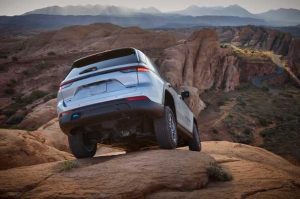 - Más capacidad legendaria – El Grand Cherokee con mayor capacidad 4×4 hasta el momento, el nuevo Trailhawk 4xe, ha conquistado la Rubicon Trail en modo totalmente eléctrico; la nueva desconexión de la barra estabilizadora exclusiva en su clase permite una mejor articulación y tracción sobre rocas y terrenos irregulares.
