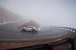 El modelo homologado para carretera marca un magnífico tiempo en la famosa subida de montaña, pese a la adversidad de la meteorología.
