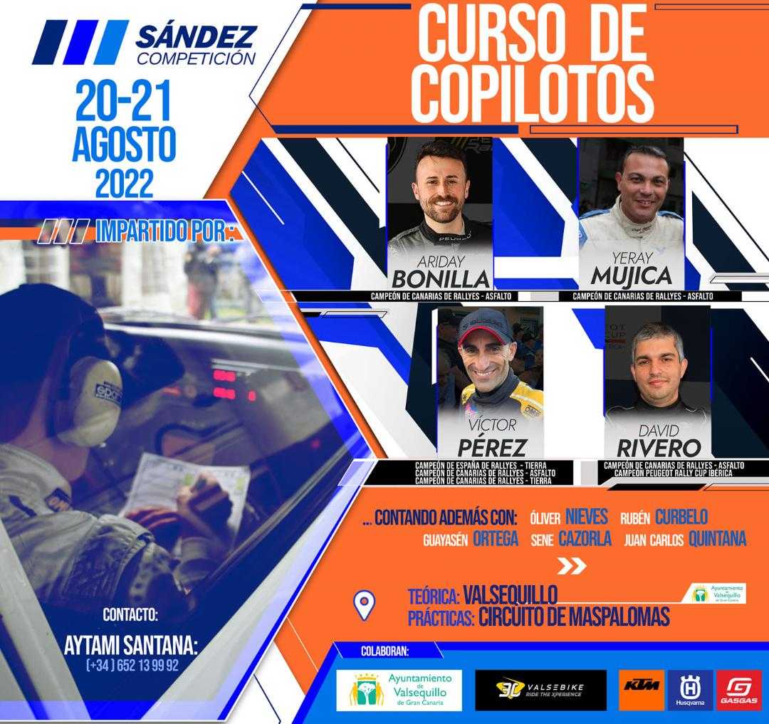 ¿Te lo vas a perder? Es una oportunidad única contar con los mejores para aprender una tarea tan bonita como a de copiloto, si necesitas más información o, directamente inscribirte en este Curso, ponteen contacto con Aytami Santana en el tlf. 652 139992.