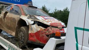 Takamoto Katsuta volcó a menos de un kilómetro de la meta en su cuarta pasada. Él y su copiloto Aaron Johnston estaban bien, aunque su equipo Toyota Gazoo Racing ahora se enfrenta a una carrera contrarreloj para reparar el coche antes de la largada esta noche.
