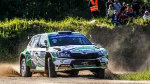 Sin embargo, su ventaja inicial fue efímera, ya que su compañero de equipo en el Toksport Škoda Fabia Rally2, Emil Lindholm, se adelantó en la siguiente especial y mantuvo el primer puesto durante el resto de la mañana.